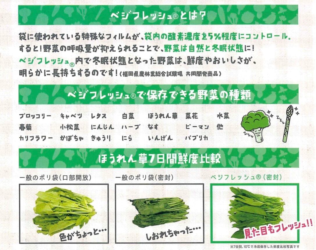 ・鮮度保持袋「ベジフレッシュ」によって、お手元に届いた後も冷蔵庫で長く新鮮な状態をお楽しみいただけます。
