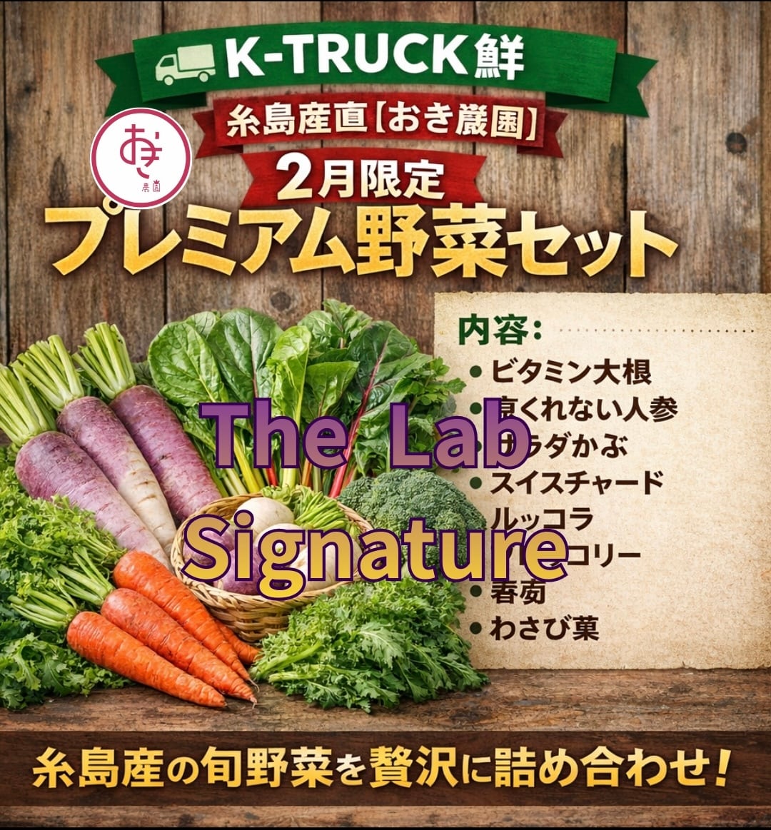 福岡・糸島の「おき農園」で今まさに旬を迎えた最高級の冬野菜を、Mobile Lab(移動式ラボ)の技術・鮮度保持袋でパッキングしてお届けします。